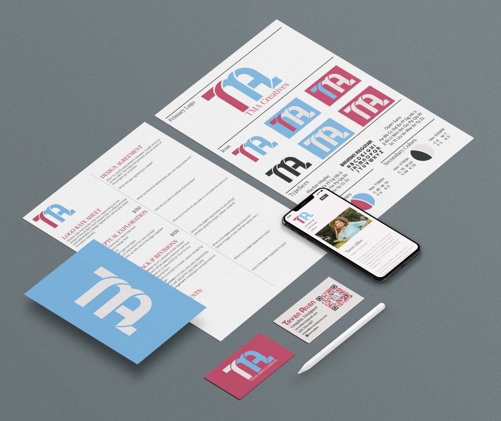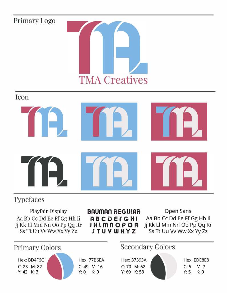 Problem-Solving: I spent a lot of time playing with the main icon. I wanted it to be a combination of my initials, TMA, while still being fun and clean. I was inspired by the font Bauman Regular and was able to merge the three letters together and add a tail to the A to create balance between the left and right sides of the icon. The icon on its own is very clean so the color choice of the light blue and dark pink add in that fun aspect to the icon.