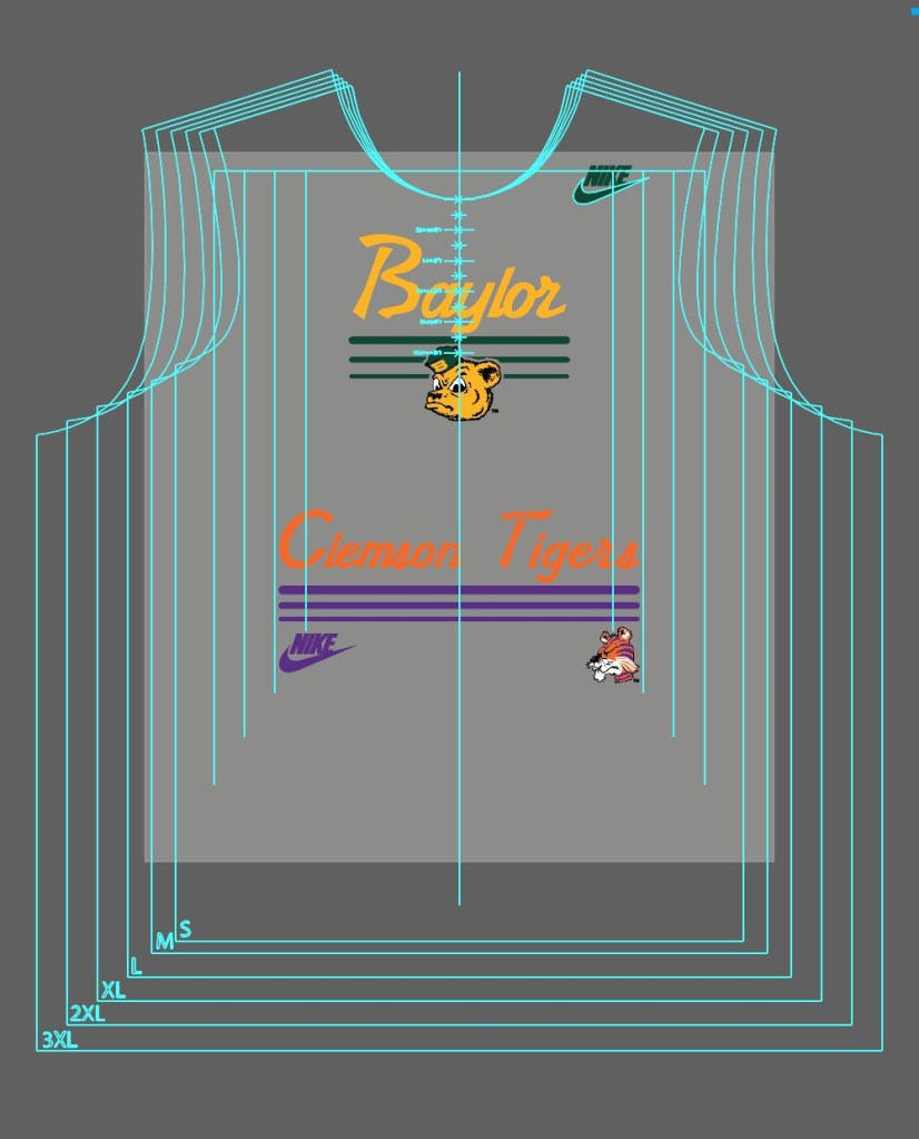 While working at Branded Custom Sportswear as a Production Art Intern, I had the opportunity to design potential art for the Nike Fall ’23 Men’s Collegiate collection. I was instructed to lean into a more retro design style for the artwork.