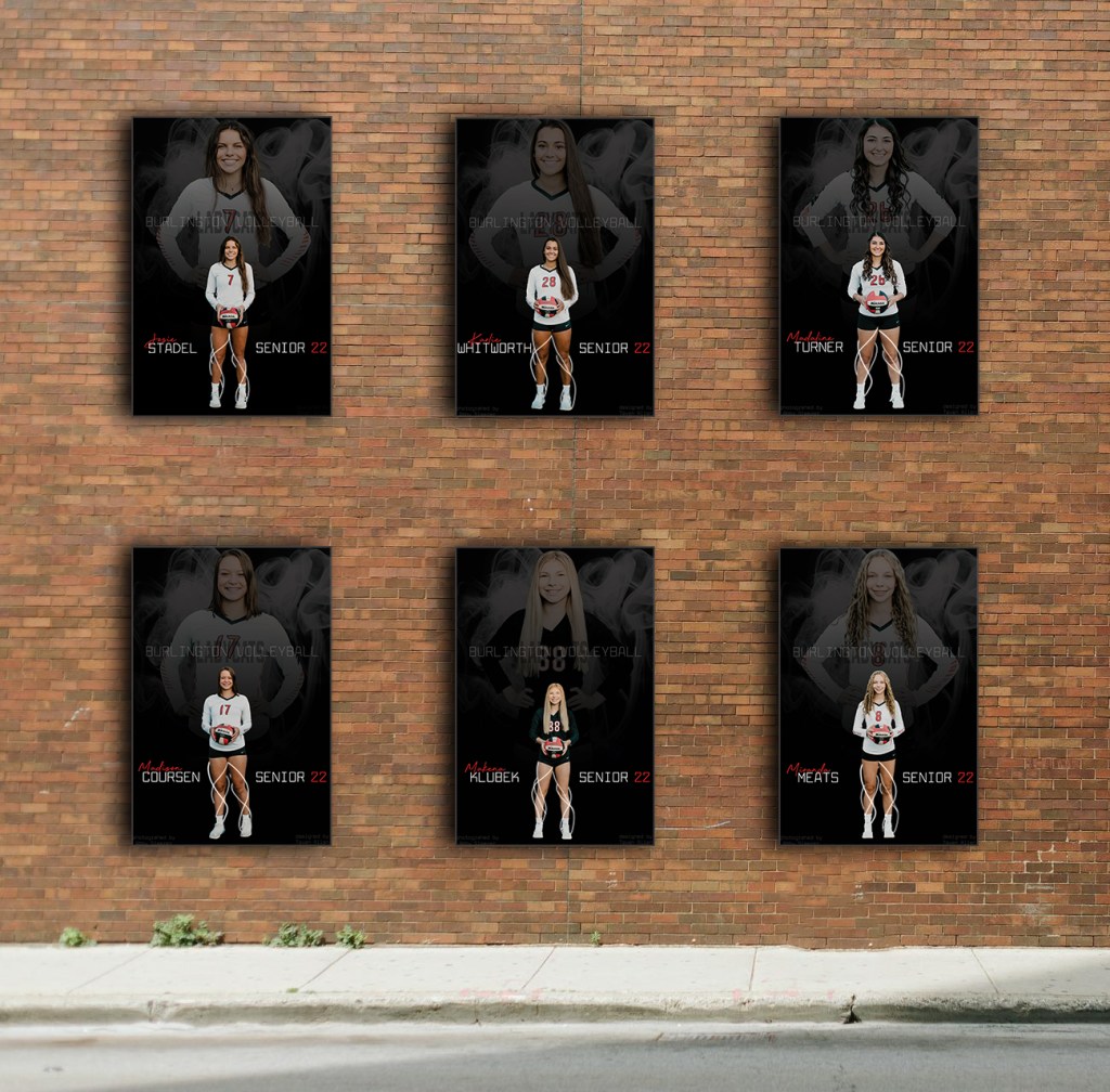 I was asked by the Burlington High School Volleyball Seniors to create their senior sports banners. They wanted a sleek and competitive look. Below is a mockup of the banners along with images of the final design the girls fell in love with.